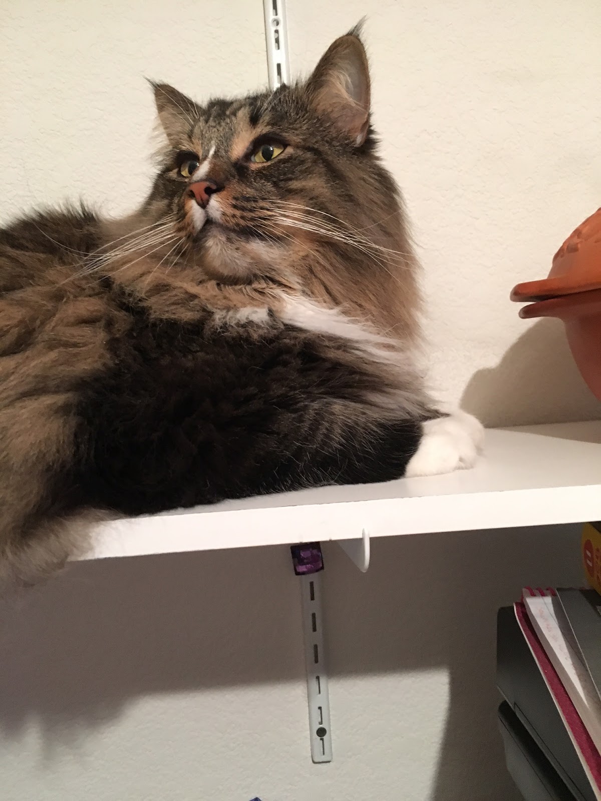 Quill: It takes a lot of extra kibble and treats to grow floof this long and soft. Mom can't get enough! It's not easy, but I do my best.